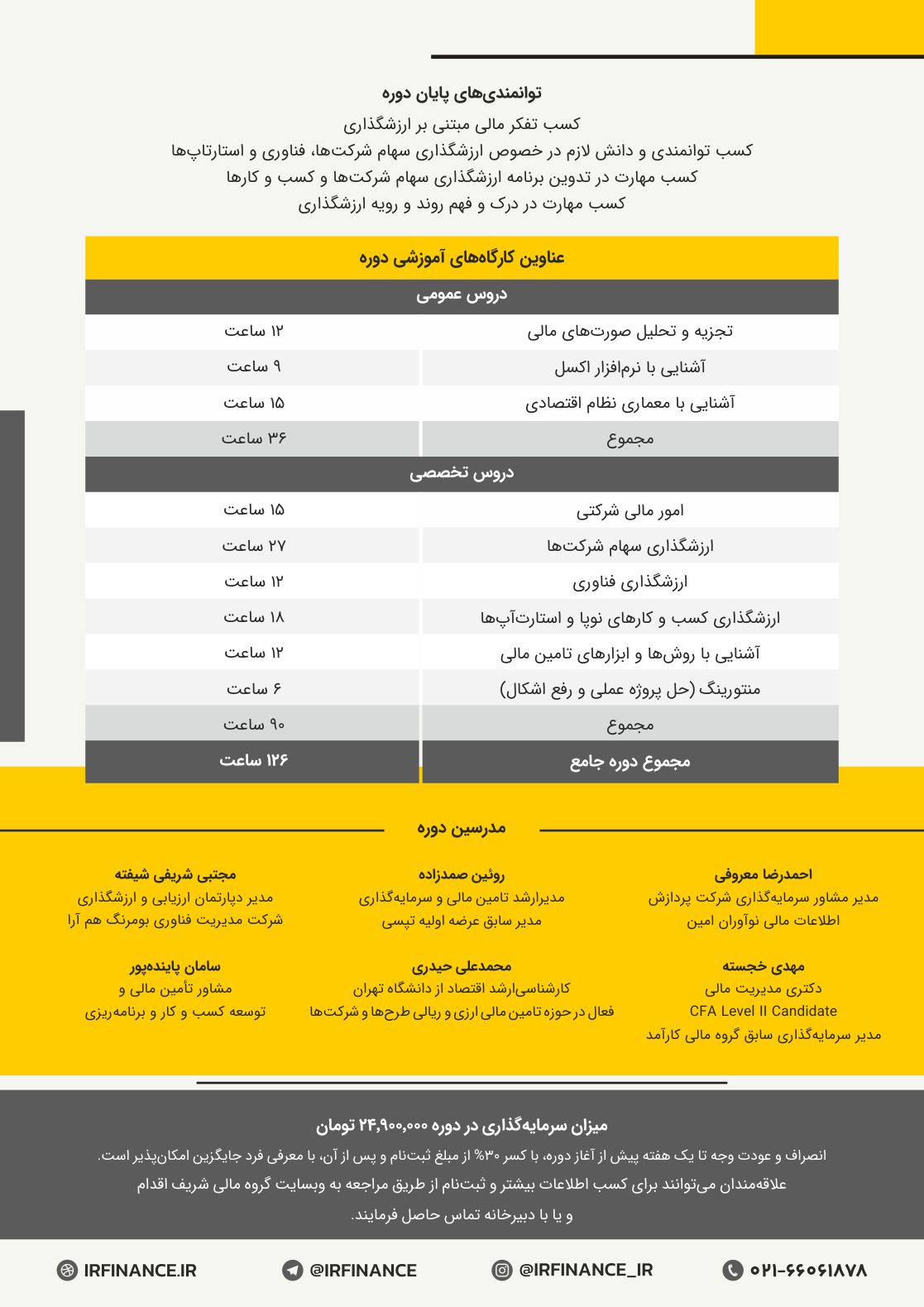 مباحث آموزشی دوره جامع پرورش کارشناس ارزشگذاری خبره